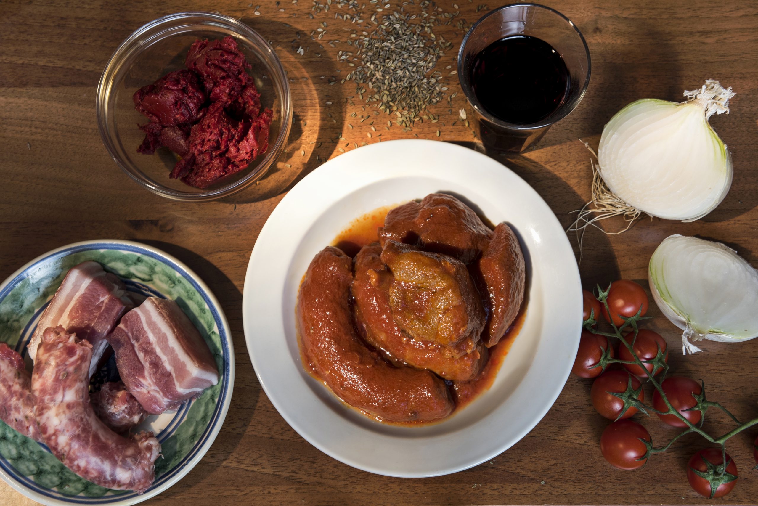 Canni ri maiali ccò sucu 10.00€ (pork meat and sausage in a rich tomato sauce) Gluten free available Category: second
