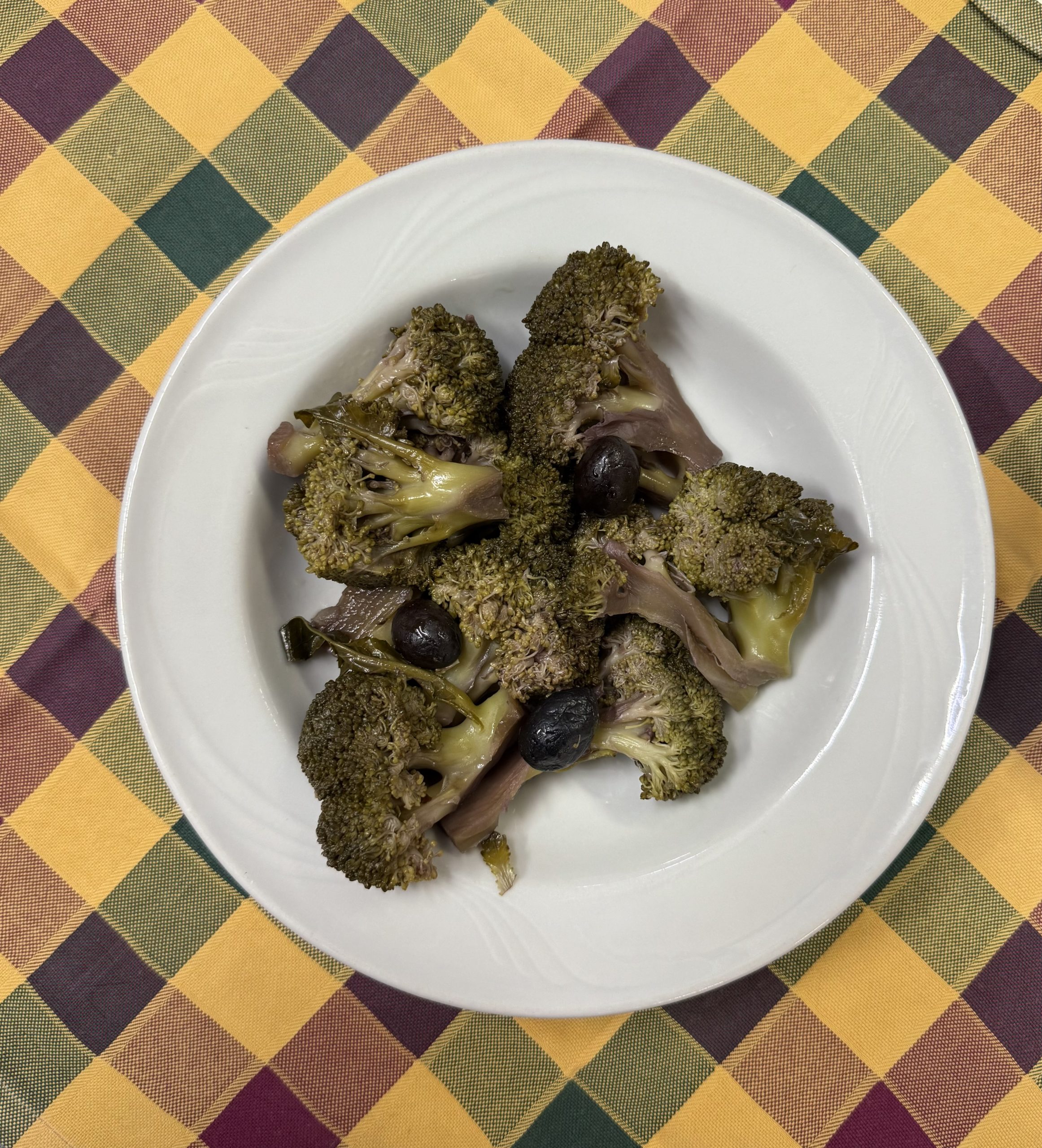 Ciuriettj affucatieddi 6.00€ Broccoli locali cotti con vino “nero d’Avola” e olive nere. Disponibile senza glutine Category: Contorno