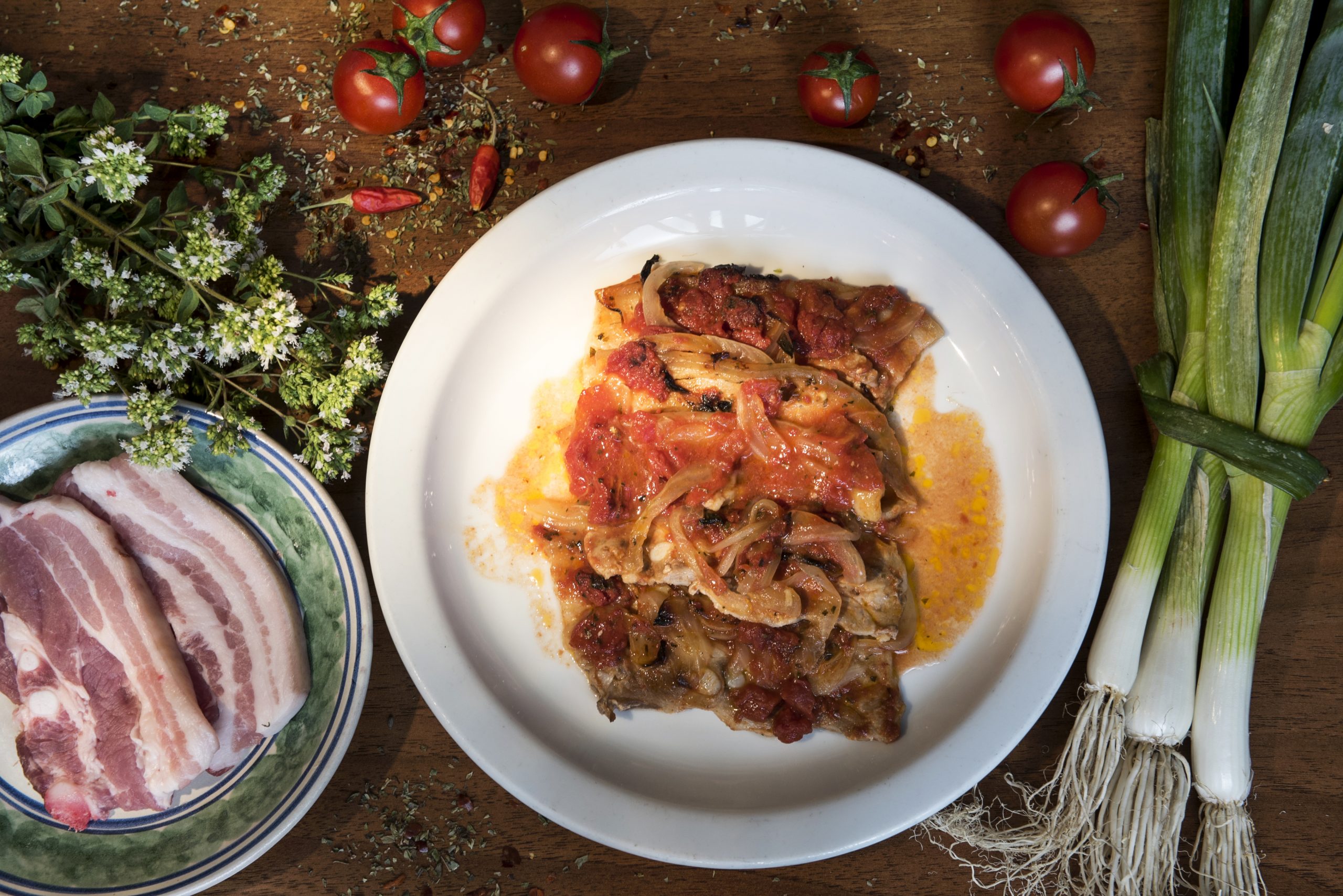 Pancetta ri maiali o funnu 10.00€ Baked pork belly with onion and tomato. Available gluten-free Category: second